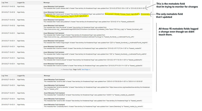 My issue is not with the trigger but rather the fact that if I make a change to one metadata field, it logs edits to 15 other metadata fields even though I haven’t touched them.