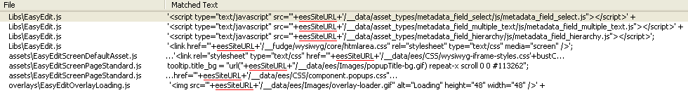 I have attached a screeny of matched uses for 'eesSiteURL' throughout all of our code.