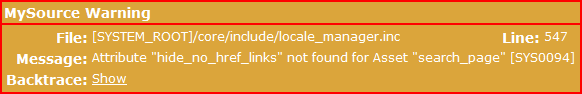 When we visit the details screen of a search page we get a PHP error referring to the new 'Hide Unlinked Navigational Text' feature.
