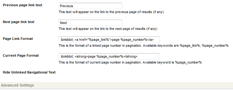 Scrolling down the search page to the 'Hide Unlinked Navigational Text' option under Display Options, it just has the field label and a blank space where the option(s) should be.