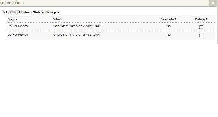 Currently for example when a user goes and edit any type of assets, for example in a day twice and then they click on the detail screen of that asset there are two up for review under the heading called scheduled future status changes (no problems there )